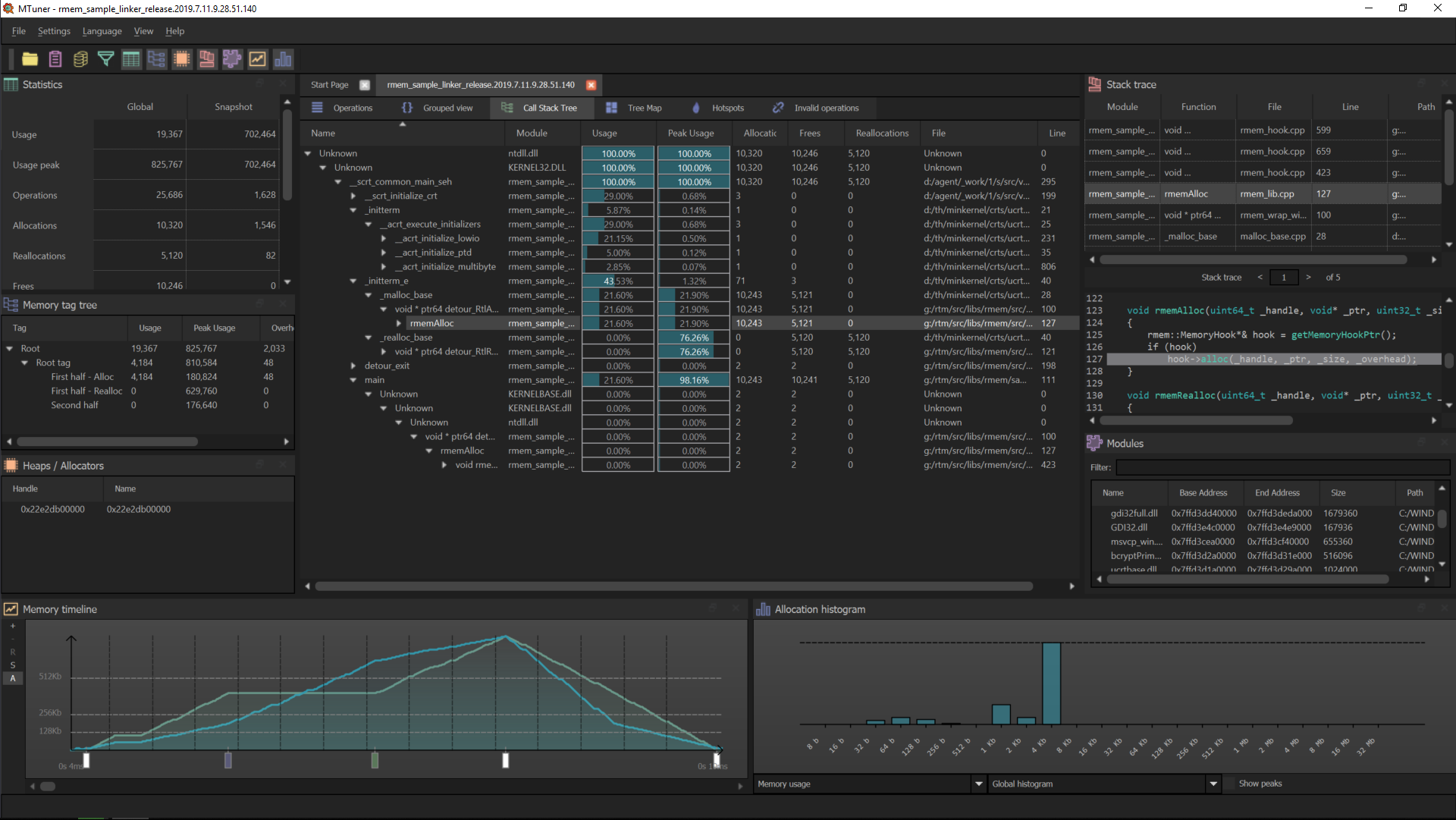 A memory profiler close to MALT also in some ways, for the dynamic part of the memory management.