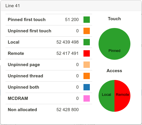 NUMAPROF is a memory access profiling tool based on pintool. It helps to detect remote NUMA and un-pinned memory accesses. On Intel KNL it also tracks accesses to the MCDRAM. The tool profide a nice web interface to explore the extracted profile by annotating the source code.
