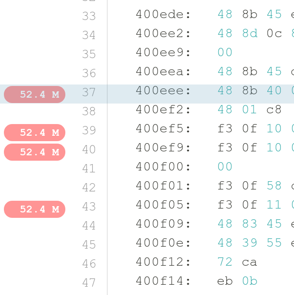 In addition to the source code annotation NUMAPROF annotate the assembly code to understand accesses at fine grain.